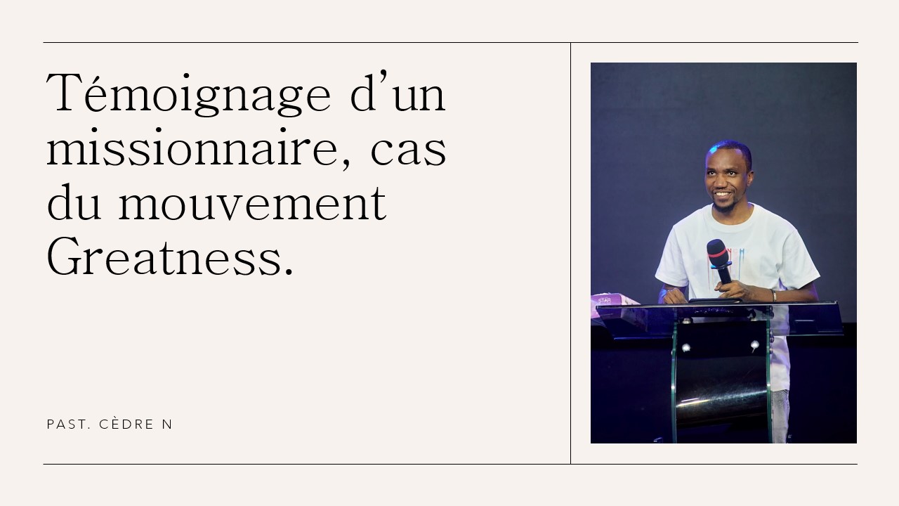 Theme: Témoignage d’un missionnaire, cas du mouvement Greatness.par le past Cèdre N....
